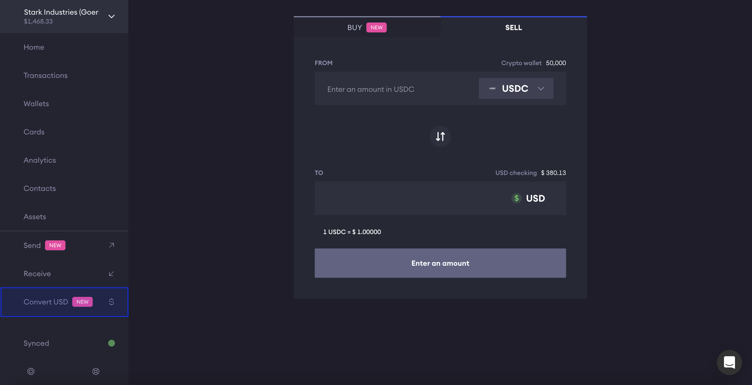 **To convert crypto (*****USDC*****) to fiat (*****USD*****), please follow the below guidelines:**&#x20;
