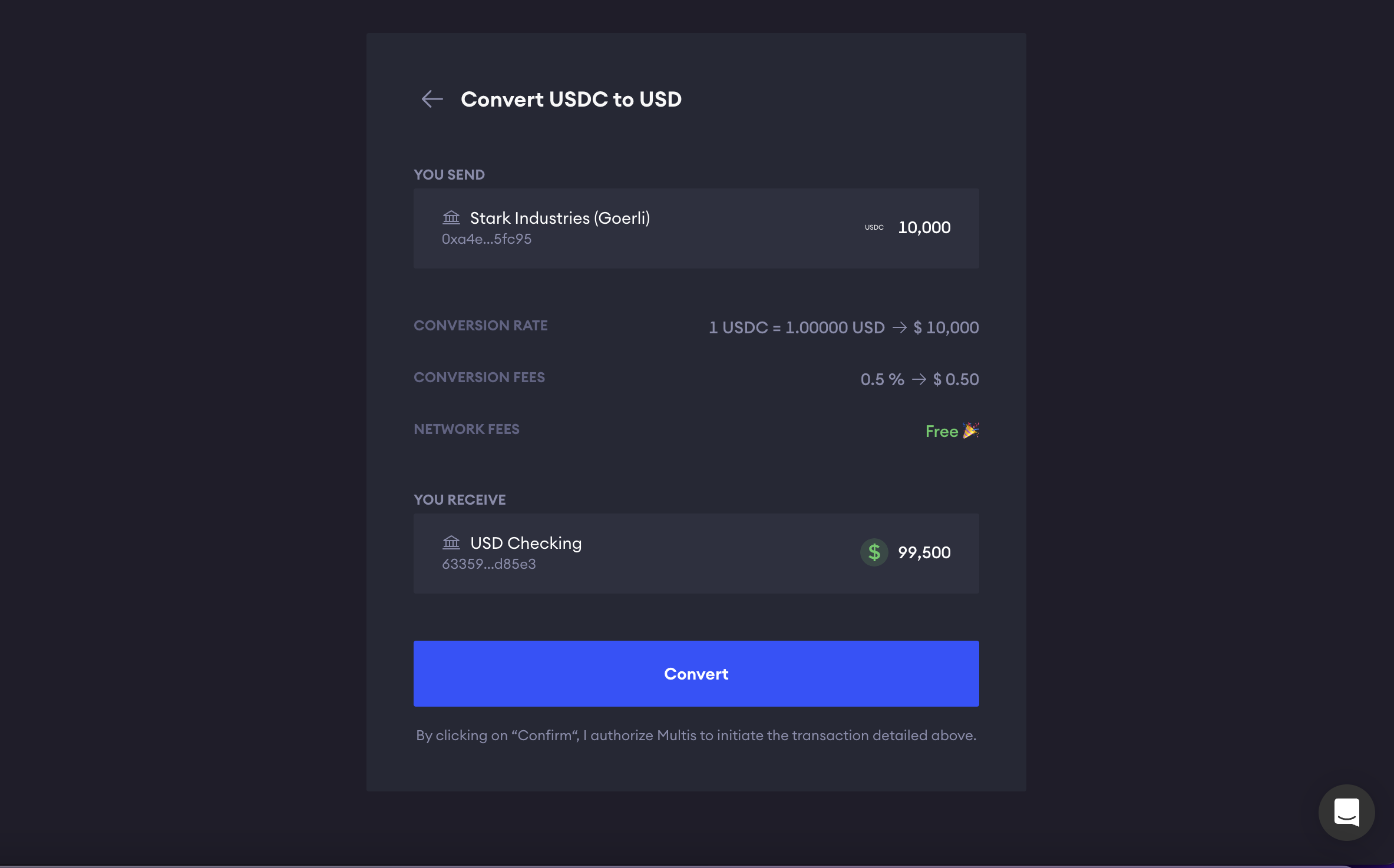 Congratulations, you've just converted crypto to fiat directly from your Multis account! 🎉