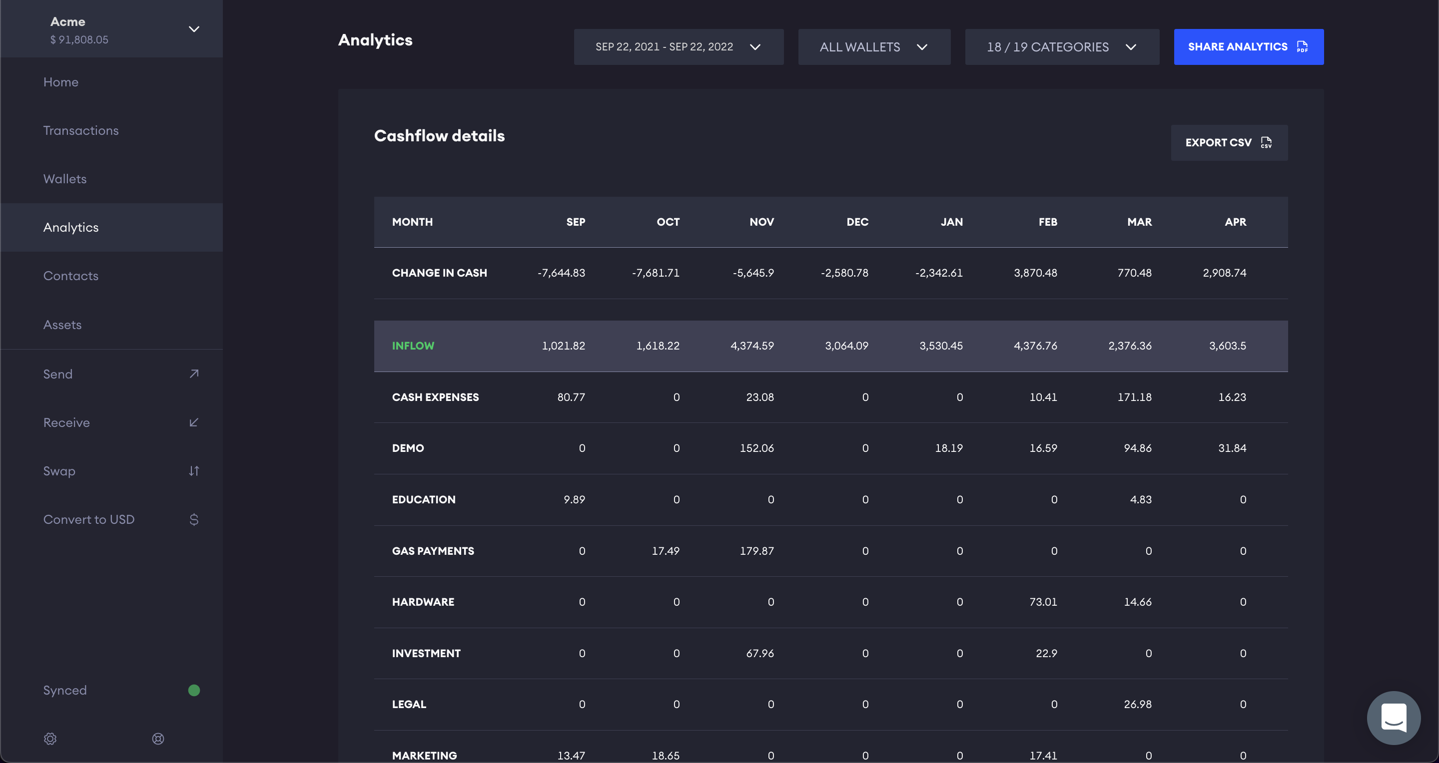 For better insights, filter the results based on the wallet and the period of tracking the most suitable for your case but also categories.&#x20;